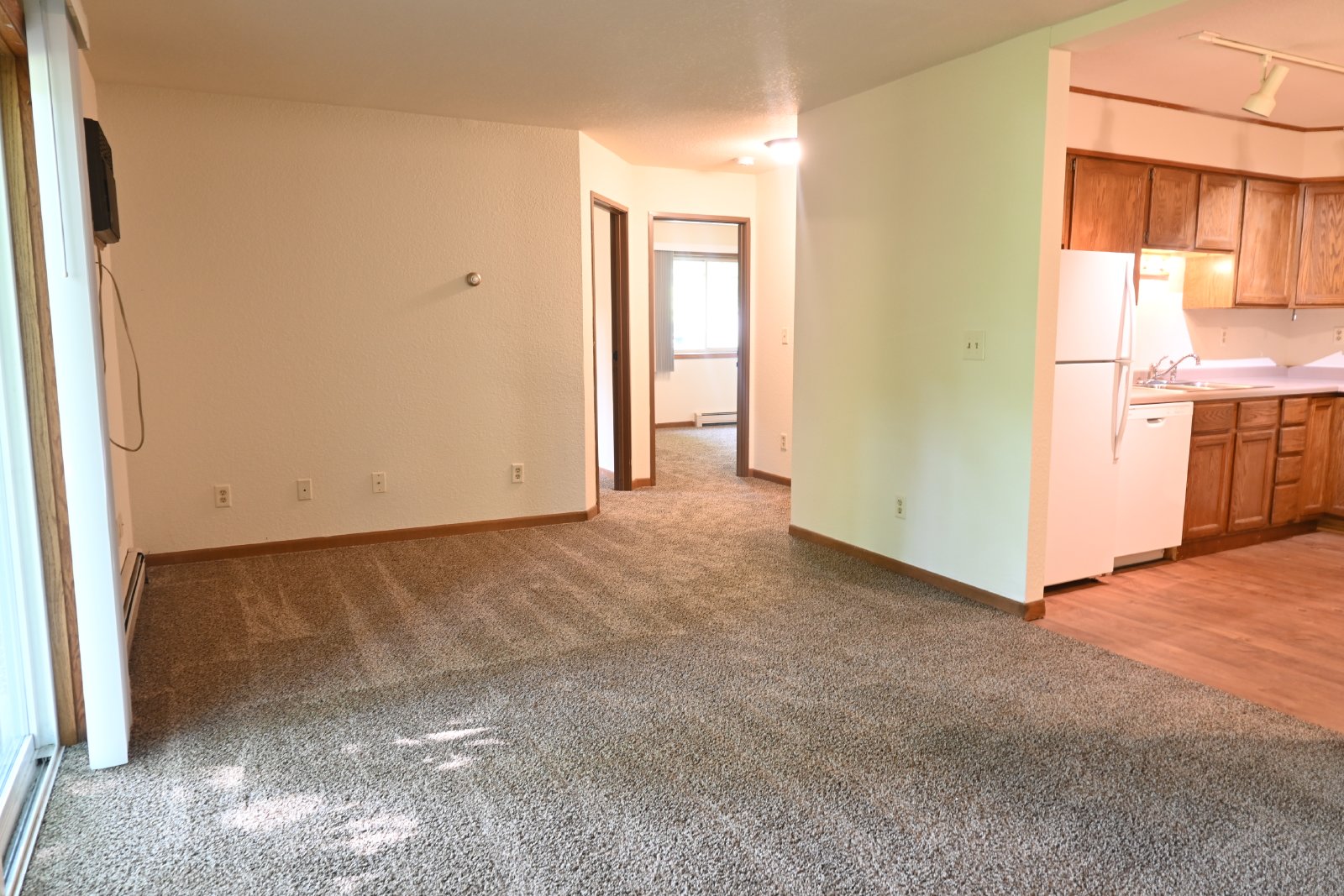 This two bedroom apartment comes with an attached one-car garage. Amenities include on site laundry, in-wall A/C, dishwasher, and ceiling fans. Rent includes heat, water, and sewer. Tenant is responsible for electric.