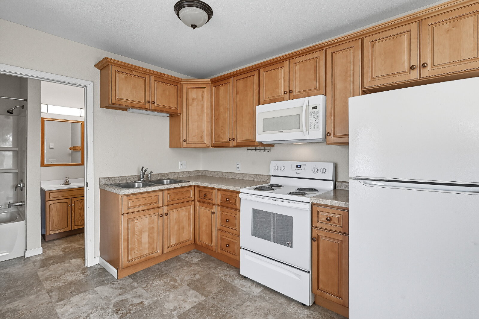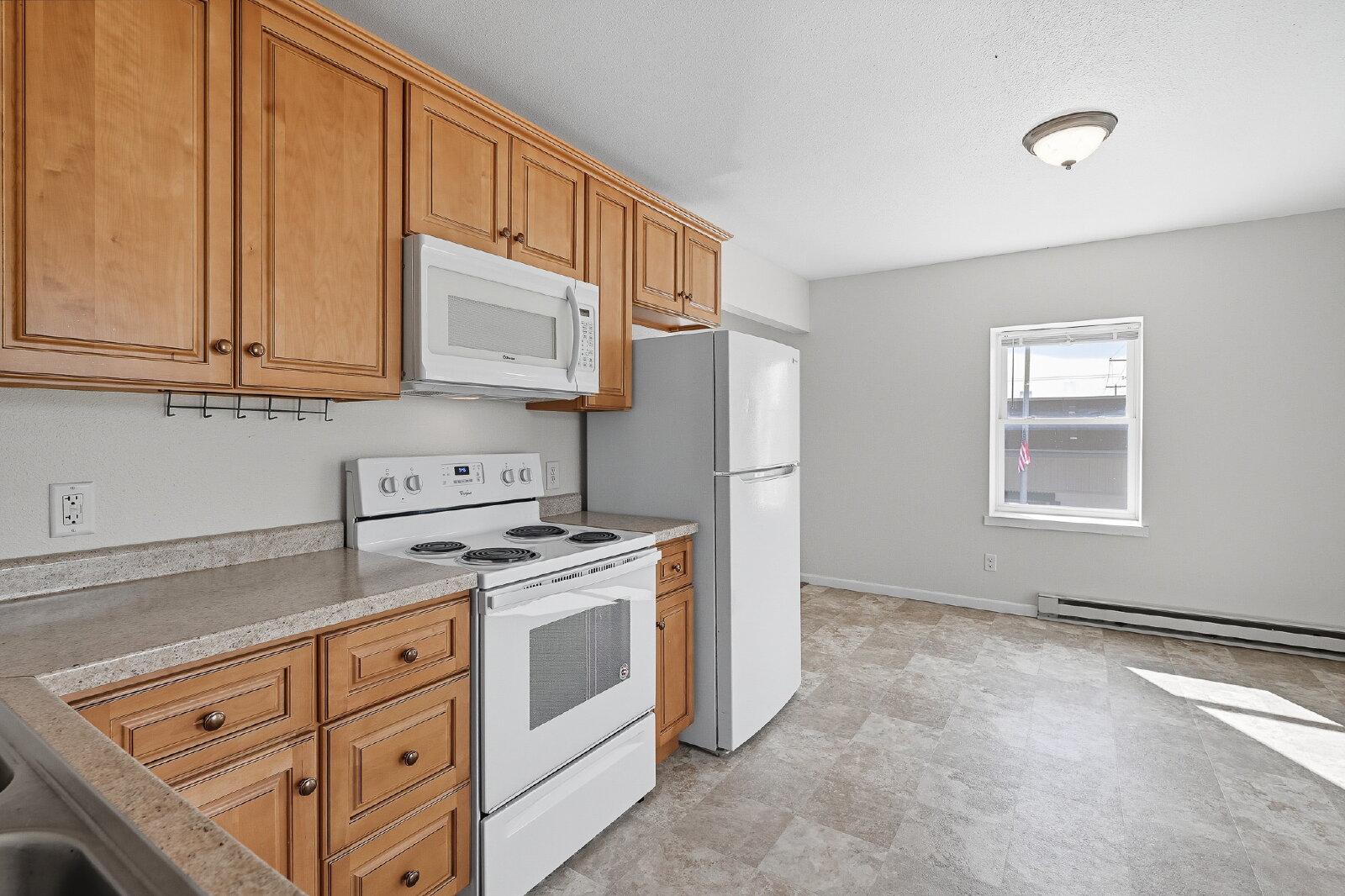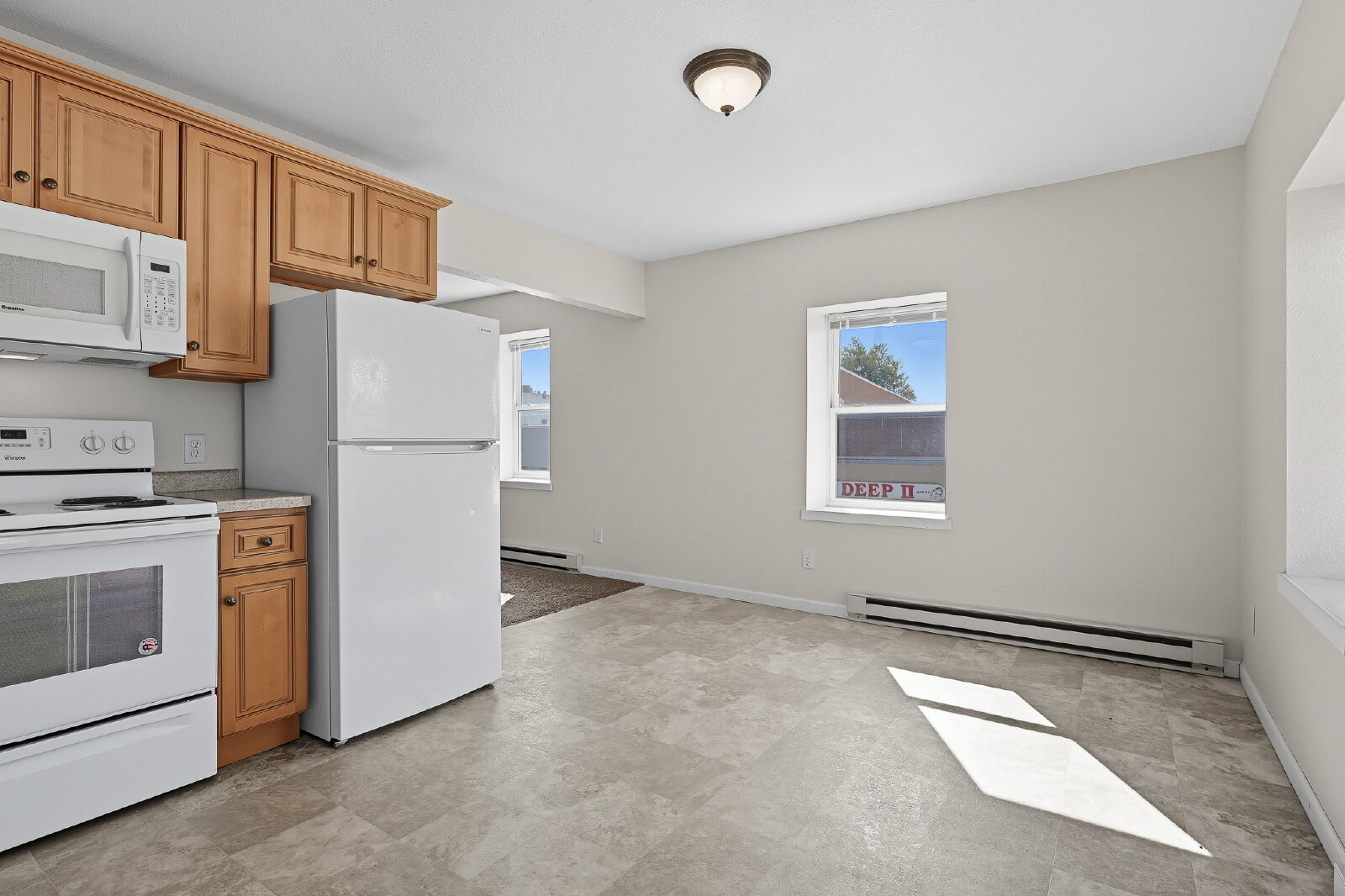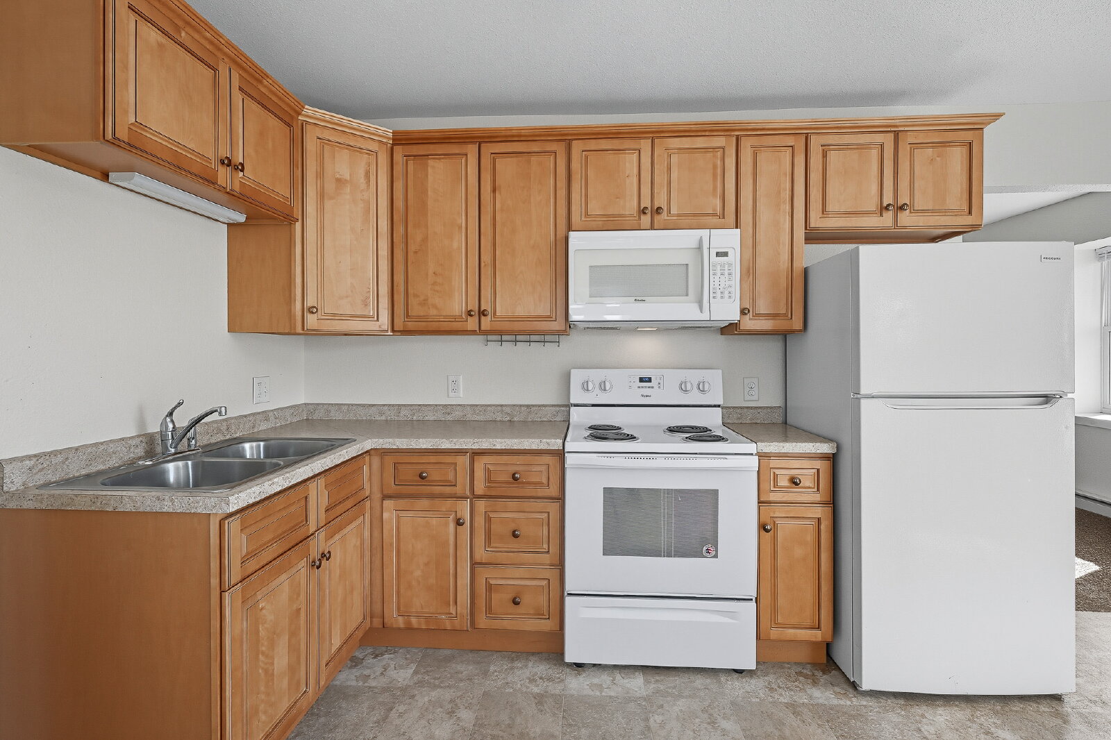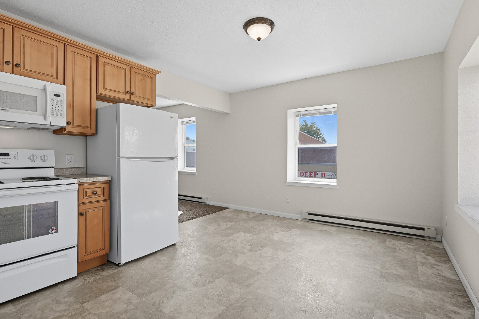 This apartment includes an above range microwave, is cat-friendly, and there is unassigned parking in the parking lot behind building. All units gets a recycling bin & garbage bin, lined up in alley way behind building.