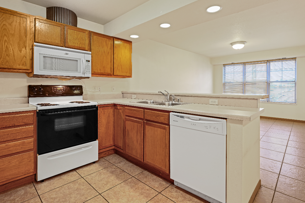 -Open concept kitchens with snack bar and all appliances