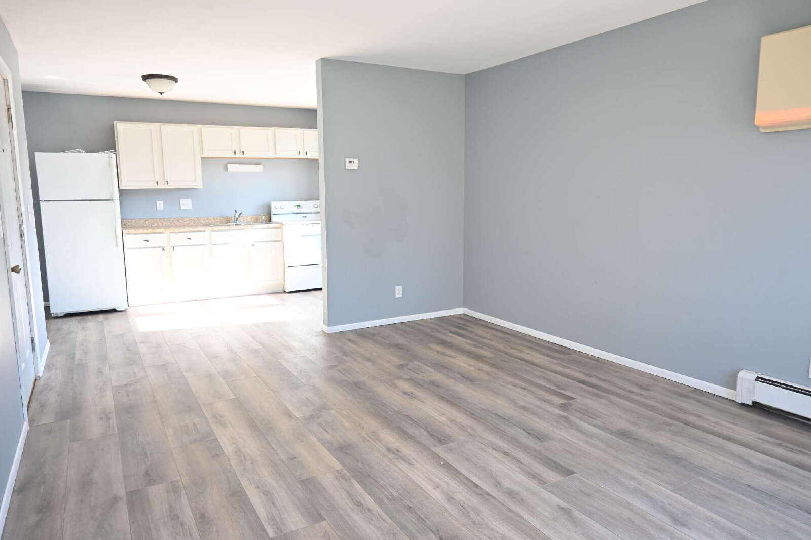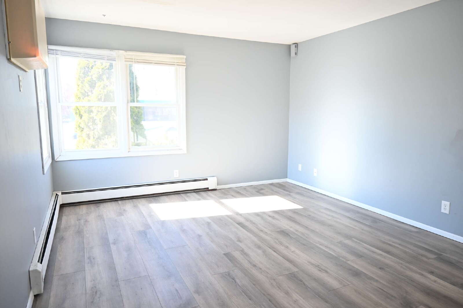 There is a coin-op washer & dryer in building for all 4 units to share. There is off street parking directly out the back door of building. 1 parking spot comes with apartment. An AC Sleeve is available if you would choose to add an air conditioner for summer months.