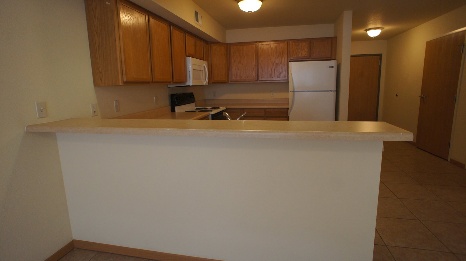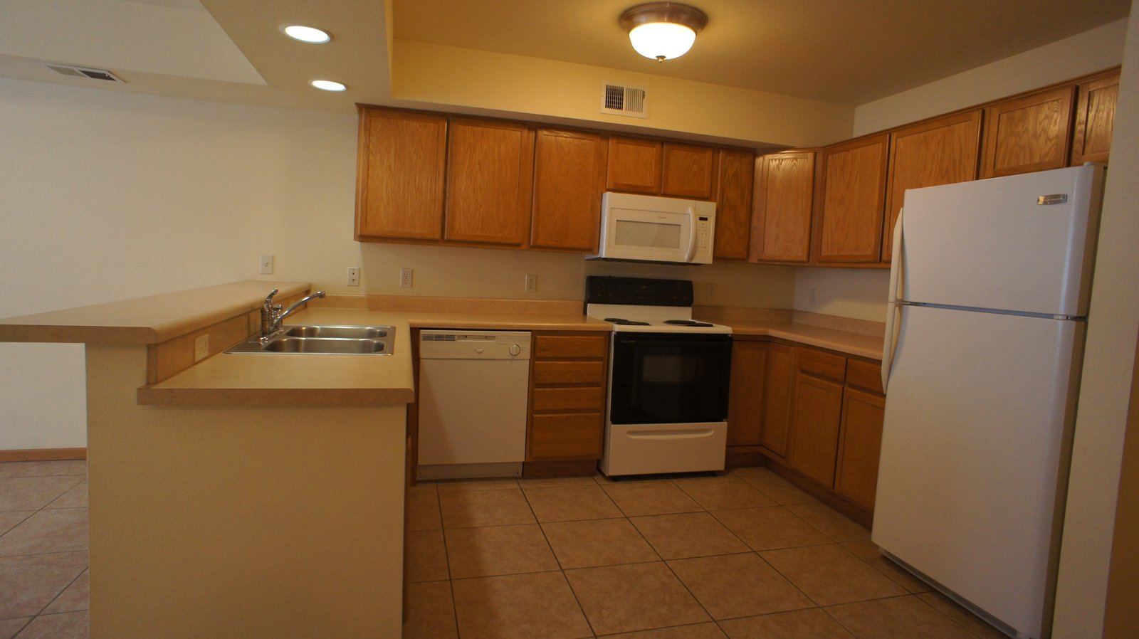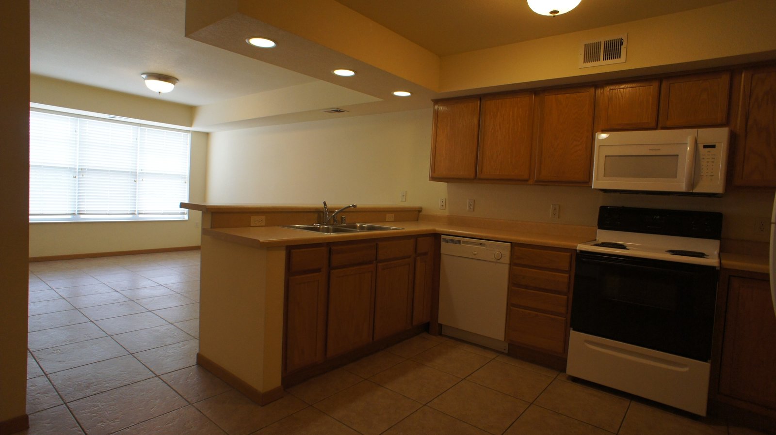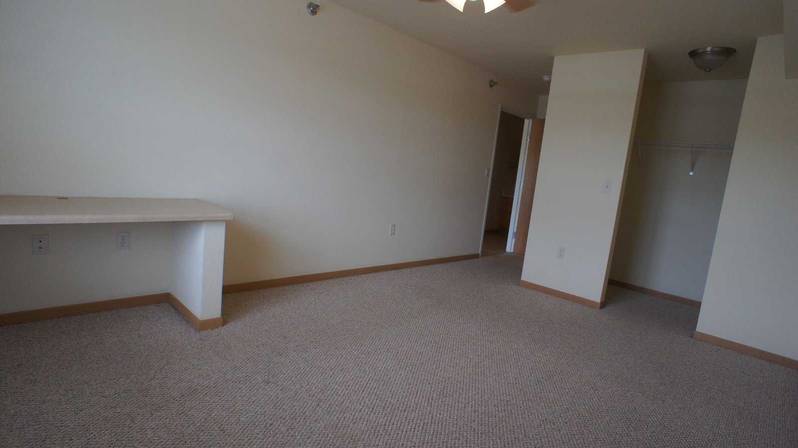 The 2 bedroom units at the University Point Apartments are a spacious 1000+ square feet with large bedrooms that comfortably accommodate 3 people for an additional monthly fee. The apartment offers an open-concept kitchen, two individual sinks and vanities, and soundproofing walls to provide less outside noise when you need to study.