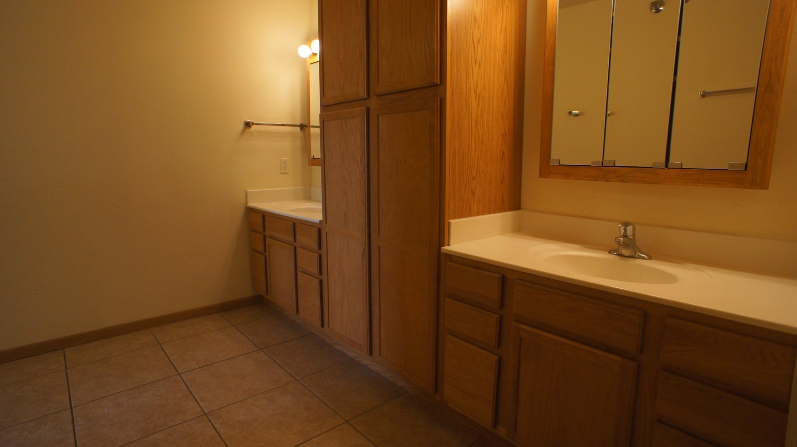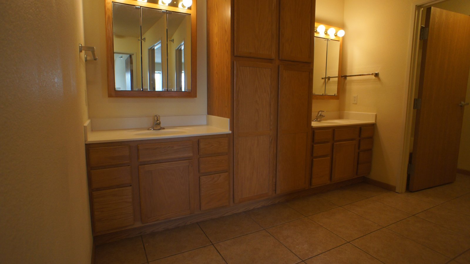 -Large compartmentalized bathrooms with two 5' sink vanities