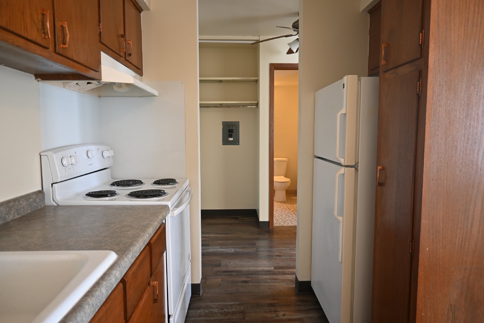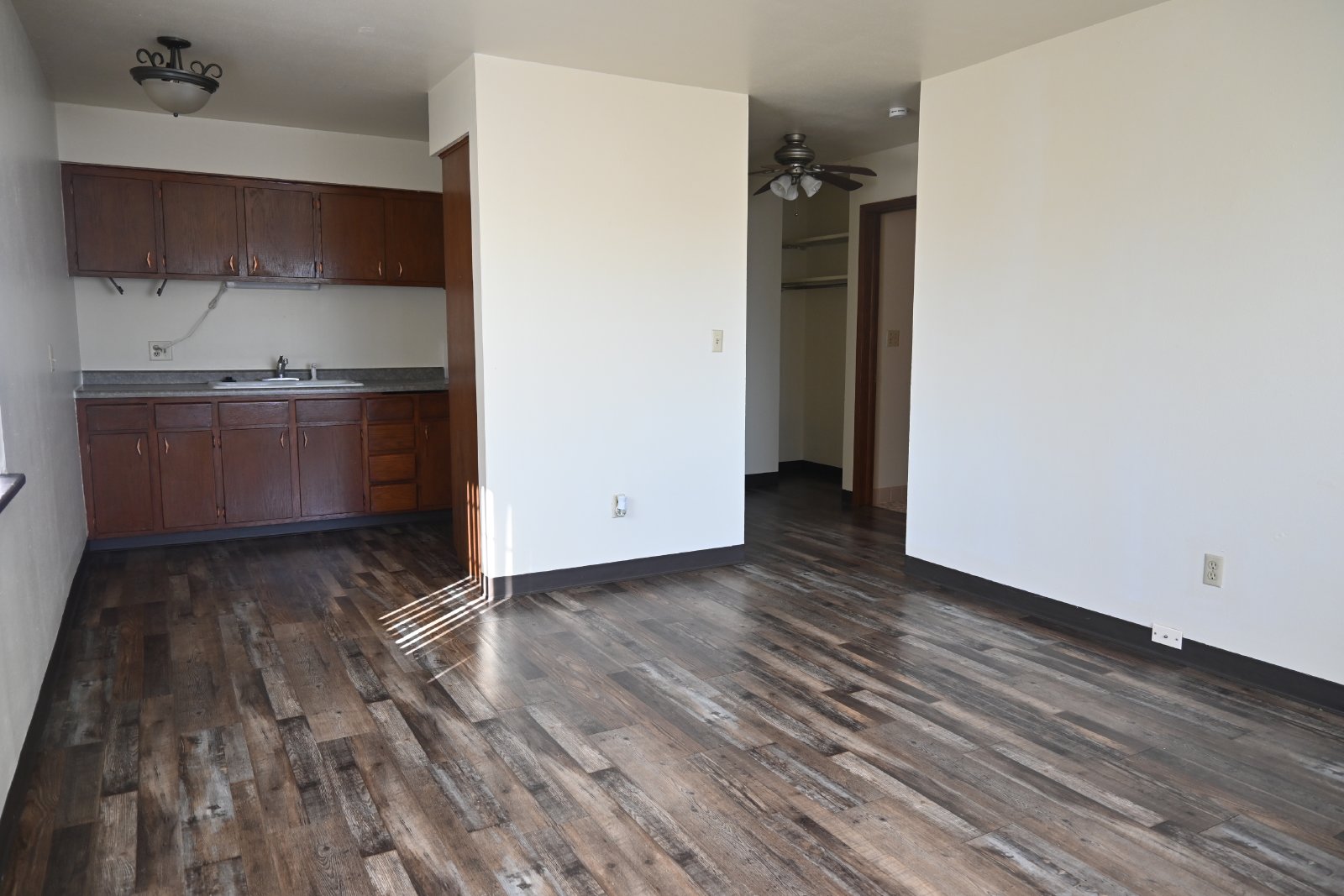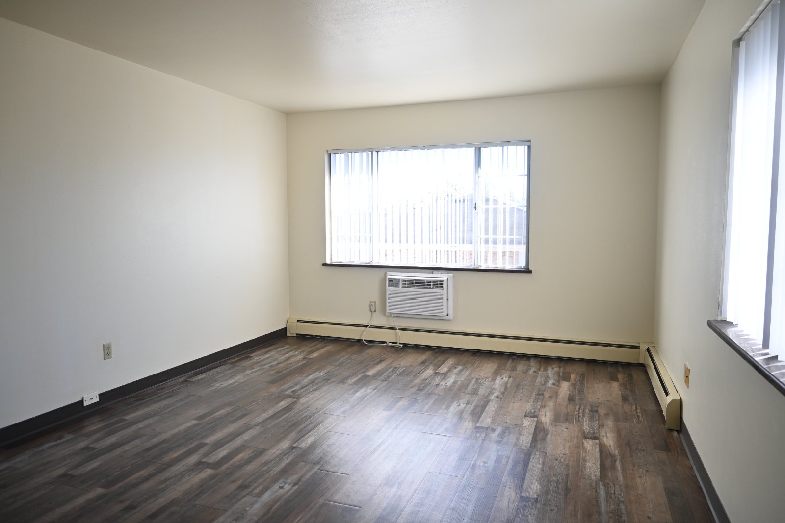 The apartment also includes an in-wall air conditioner, is pet-friendly, and has on-site laundry.