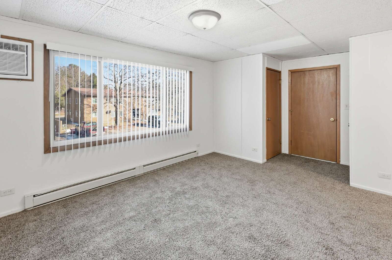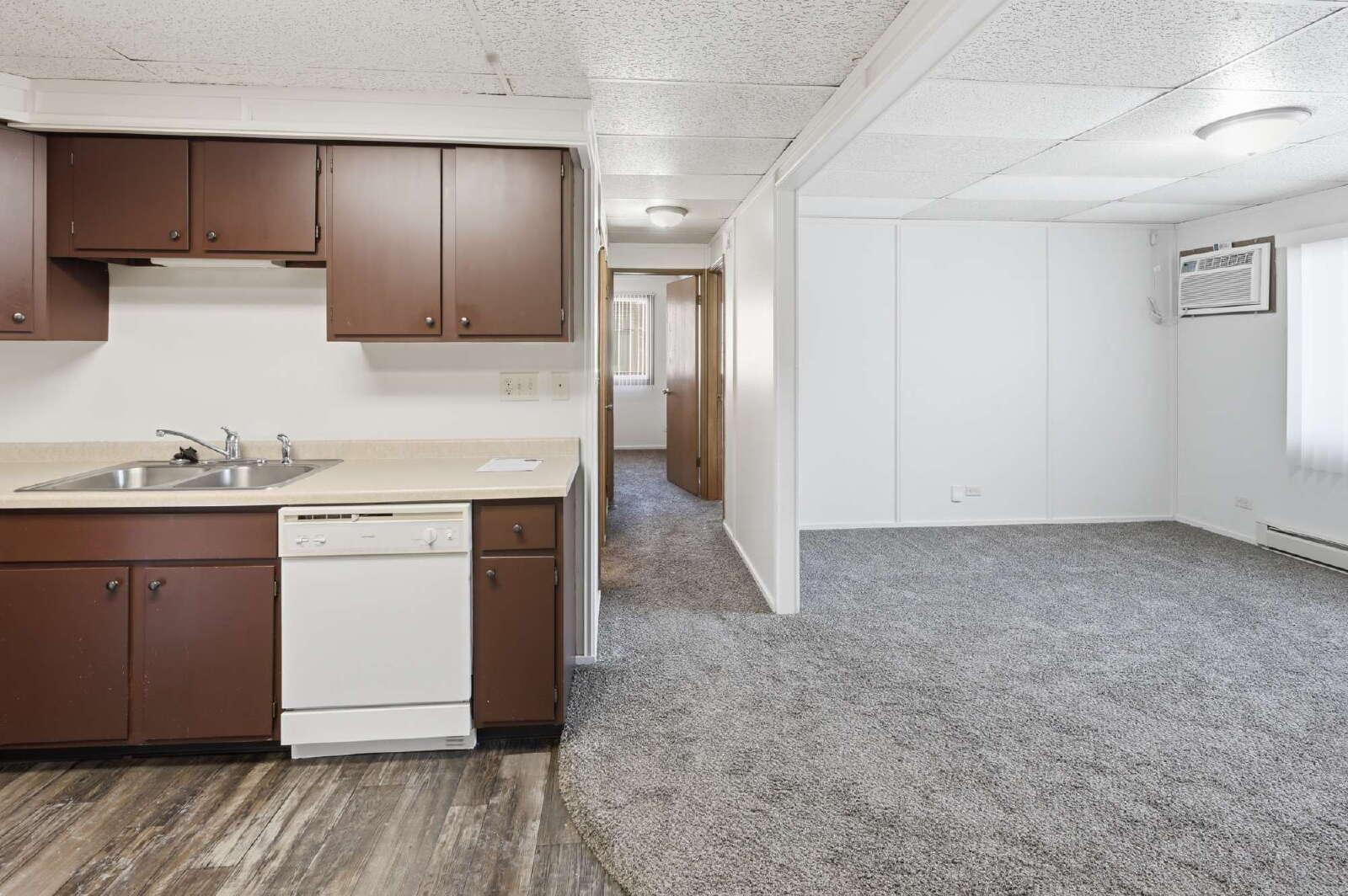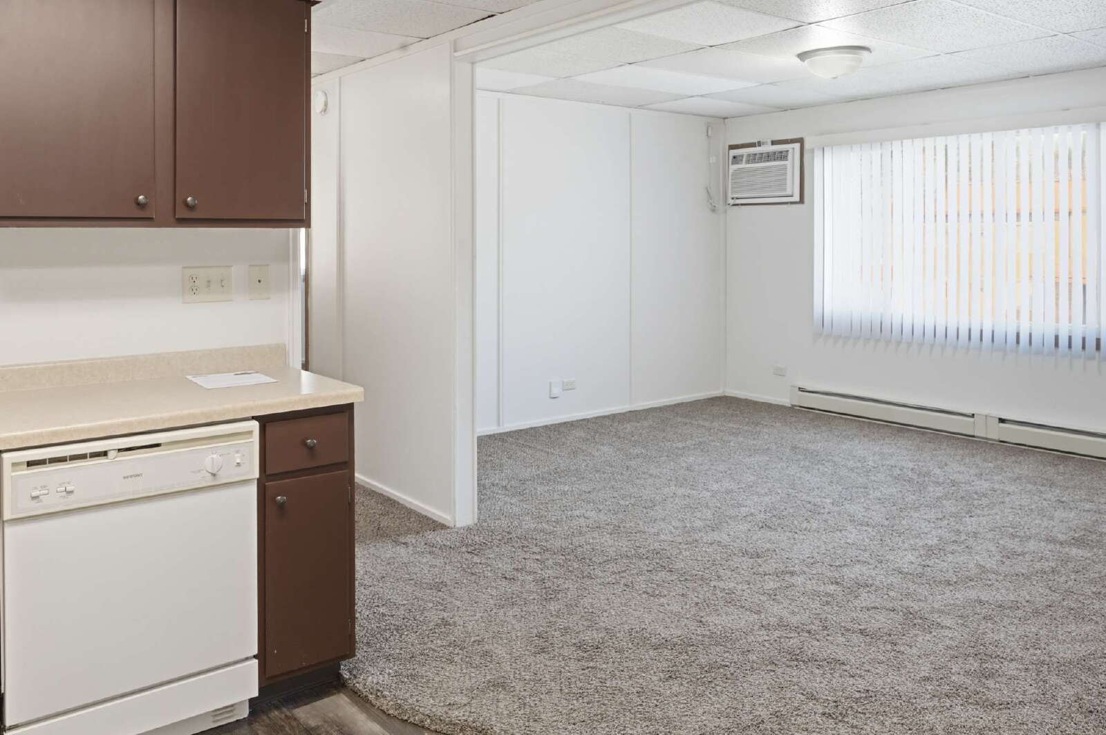 This two bedroom apartment has a roomy open design that flows from room to room. The kitchen includes stove, refrigerator, and in most units a dishwasher. Every apartment comes equipped with an in-wall air conditioner for cooling off on those warm summer nights. On-site there are coin-op washers and dryers to make doing laundry more convenient, and a private storage space in the basement.