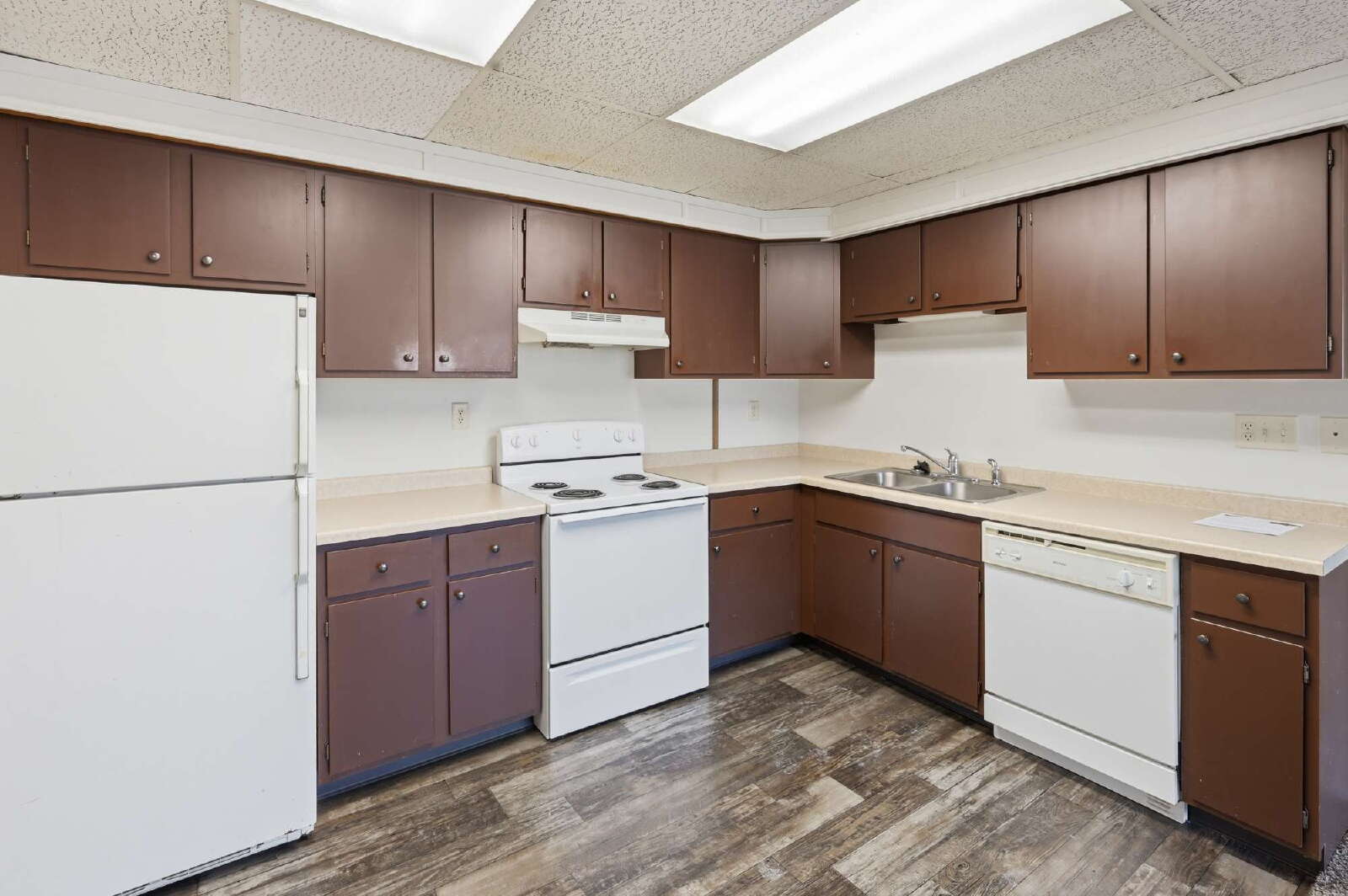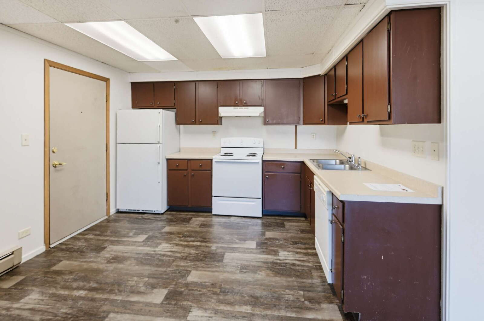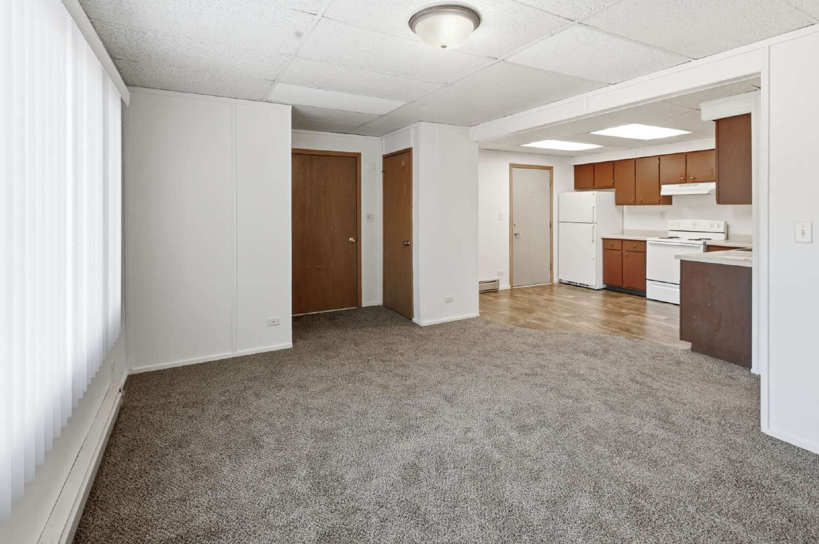 This two bedroom apartment has a roomy open design that flows from room to room. The kitchen includes stove, refrigerator, and in most units a dishwasher. Every apartment comes equipped with an in-wall air conditioner for cooling off on those warm summer nights. On-site there are coin-op washers and dryers to make doing laundry more convenient, and a private storage space in the basement.