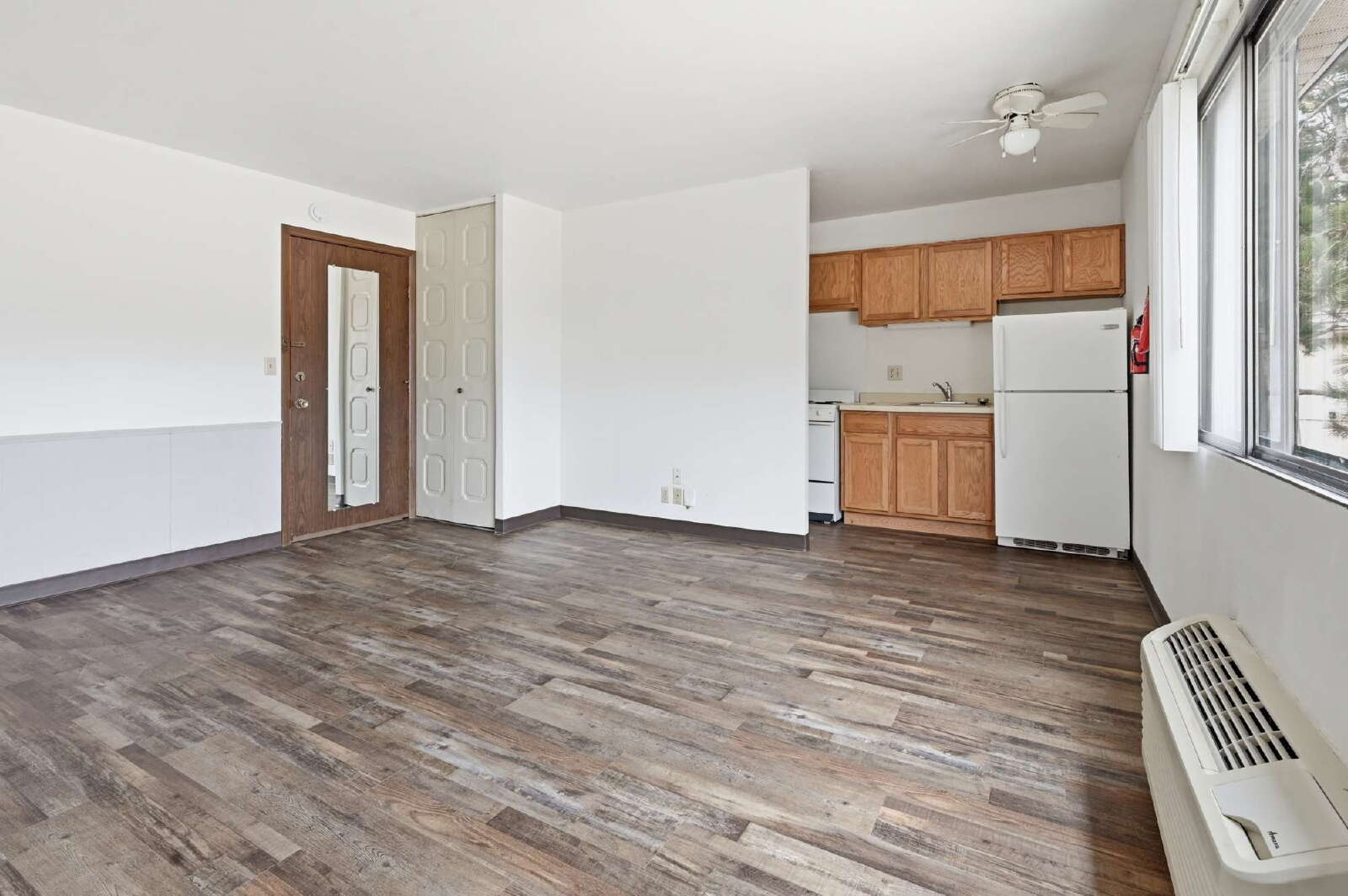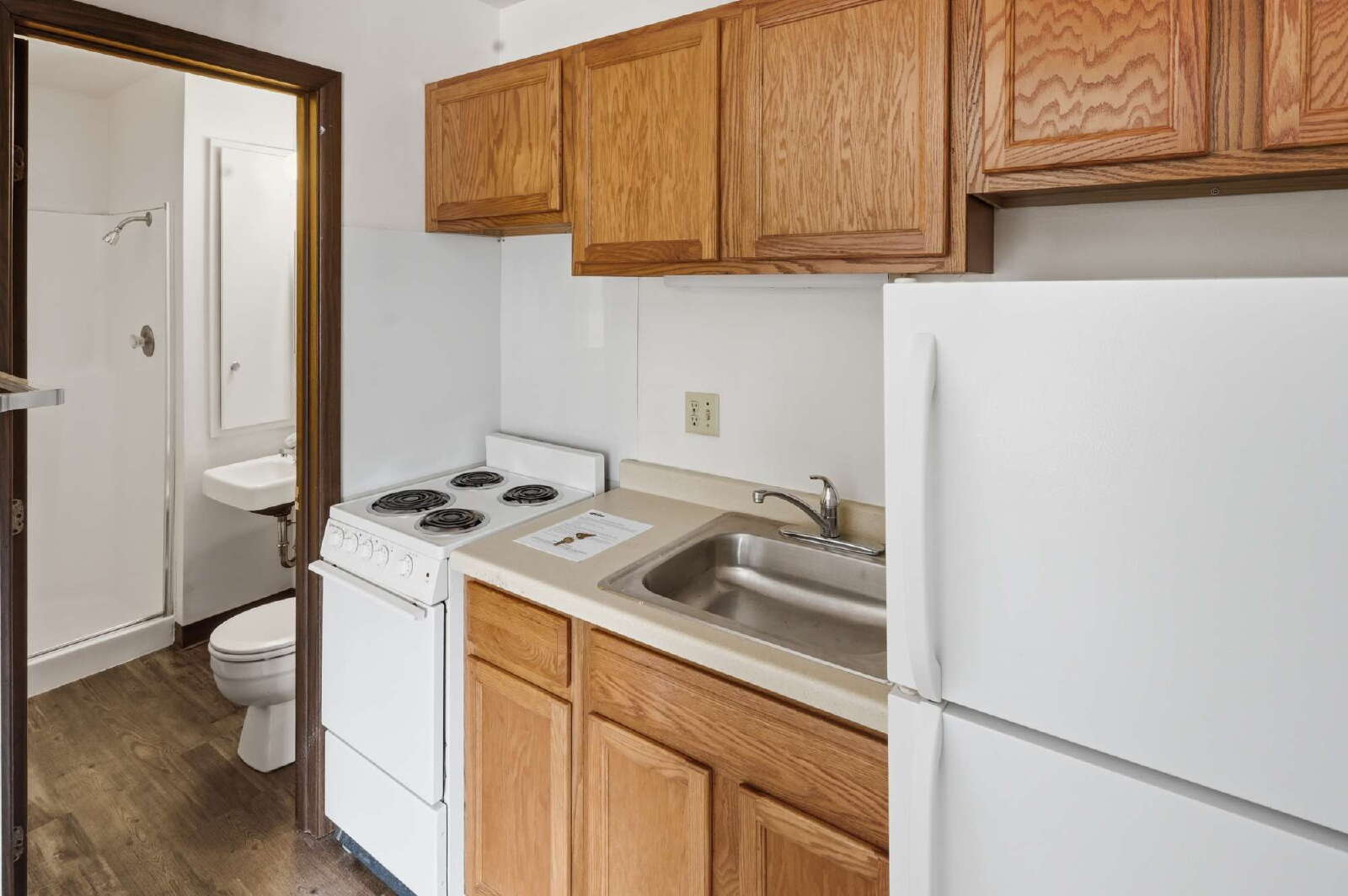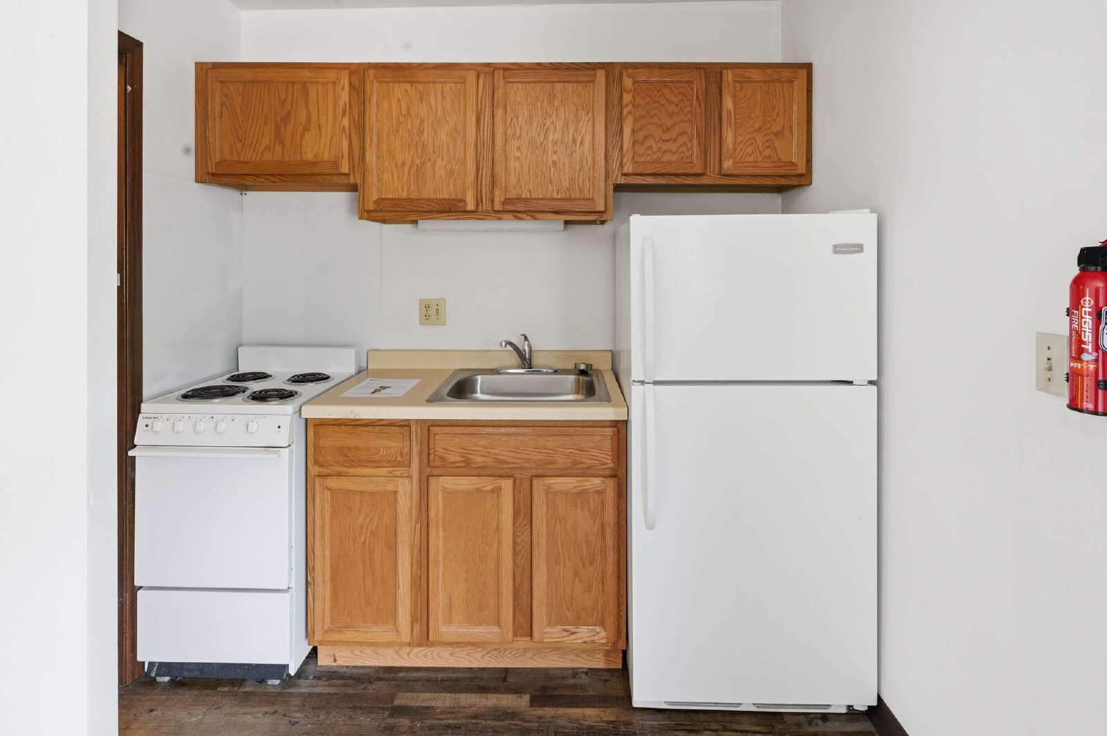 The Park View Apartments are located in the heart of Stevens Point and features affordable studio apartments. Each apartment has a central living/sleeping area, a kitchen with a stove & fridge, and a bathroom with a shower.