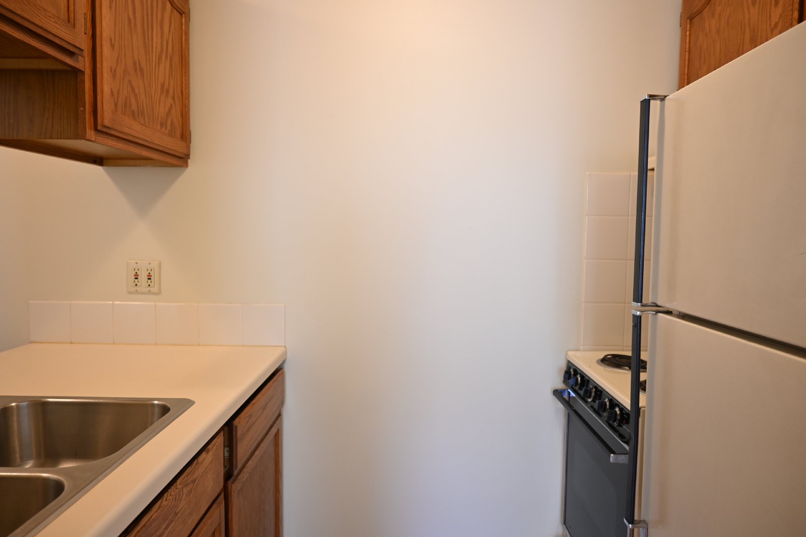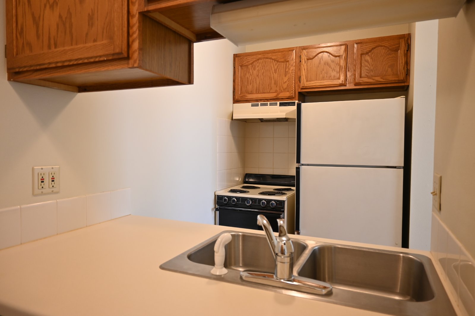 Quality one-bedroom townhouse-style apartment. Each unit has a private exterior entrance with no apartment above and no common corridors. The lower level of the home has the living room and kitchen. The upper level is where your bedroom and bathroom are located. Super-insulated construction for low energy costs and a very quiet, comfortable environment. The kitchen includes a refrigerator and stove. Secure on-site coin operated laundry available. On-site garages may be available for an additional cost.