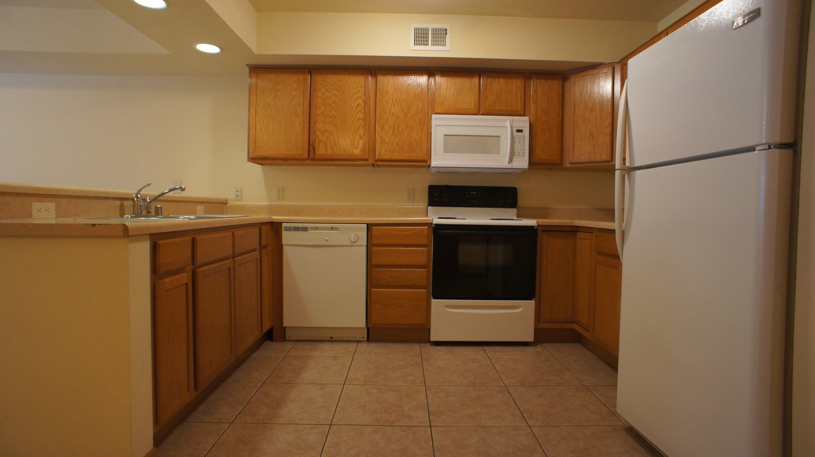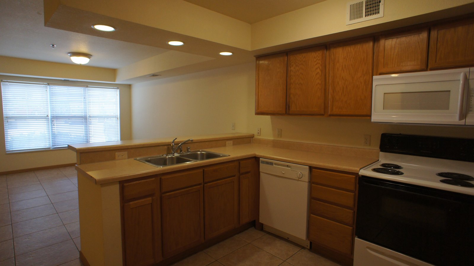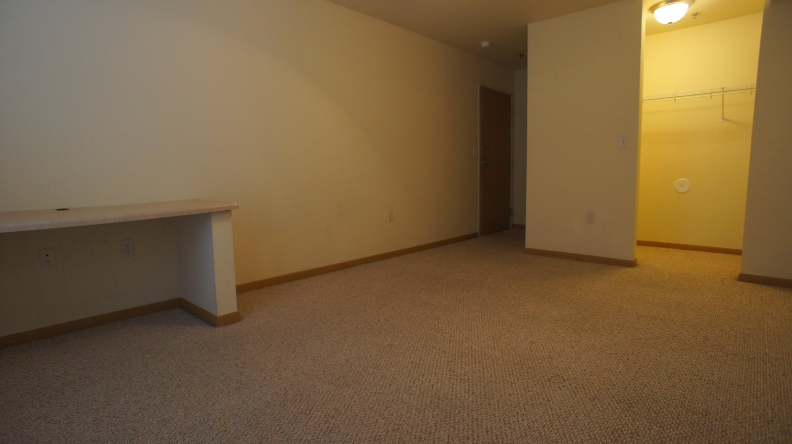 The 2 bedroom units at the University Point Apartments are a spacious 1000+ square feet with large bedrooms that comfortably accommodate 3 people for an additional monthly fee. The apartment offers an open-concept kitchen, two individual sinks and vanities, and soundproofing walls to provide less outside noise when you need to study.