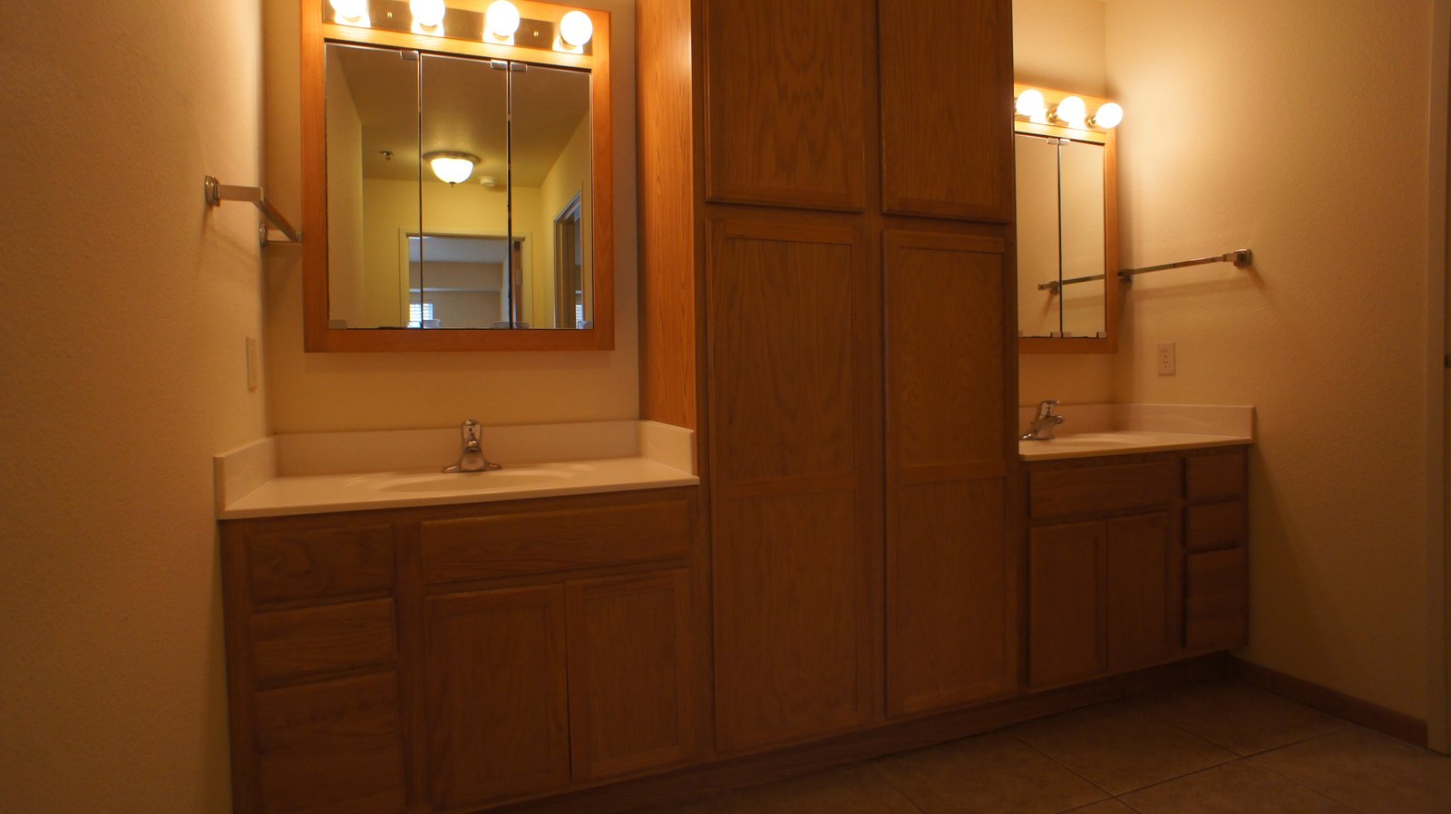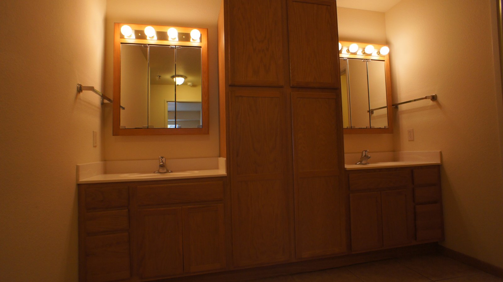 -Large compartmentalized bathrooms with two 5' sink vanities