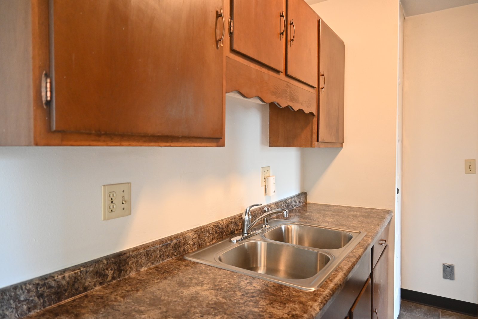 The property features on-site parking and laundry facilities. Rent includes water/sewer, garbage/recycling, lawn care, and snow removal. Residents pay their own electric, heat, hot water, and gas.